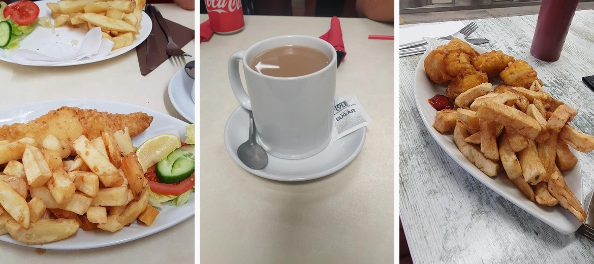 Fantastic place for fish and chips. Food was great, staff were friendly. We ordered 2 cod & chips, 2 curry sauce, 1 mushy peas, I portion of bread and butter (2 slices) and two diet cokes and it came to about £28, so great value.